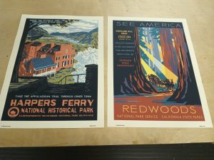 Two new serigraphs now available–Harpers Ferry and another Redwood–Howland Hills Stage–our fifth “Big Tree” print. Gotta love that burst of sunlight. Note: We’re raising our prices to $50 for serigraphs after a 10 year wait–beginning February 1. Still the best buy on serigraphs in America.
